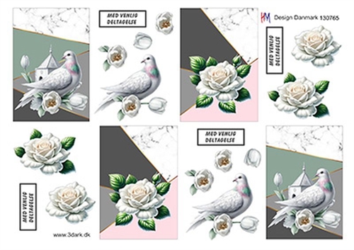 3D Due og hvid rose