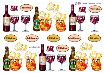 3D Sjove motiver med øl og vin